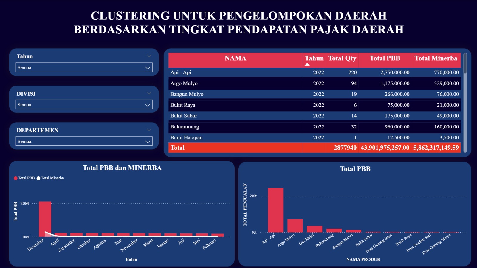 Visualisasi Dari Klasterisasi Pengelompokan Daerah Berdasarkan Tingkat Pendapatan Pajak Daerah Kota Penajam Paser Utara Dan Sektor IKN Menggunakan Metode Analisis Klaster Lanjutan