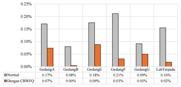 Gambar 3: Grafik Penurunan Rata-rata Packet Loss Sebelum dan Sesudah Penerapan CBWFQ