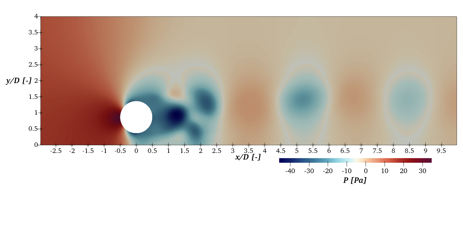 Gambar 4. Distribusi tekanan yang terjadi disekitar pipa dan area dibelakang pipa
