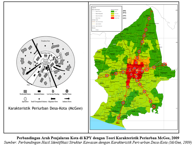Hasil identifikasi kawasan peri-urban di KPY ini jika disandingkan dengan teori periurban desa-kota McGee (2009), maka struktur kota dan arah penjalarannya sesuai, hal ini dapat dilihat pada gambar di bawah ini.