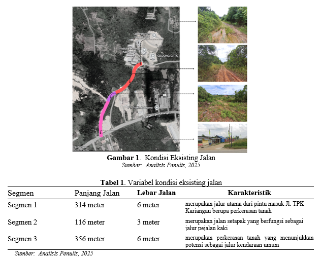 Kawasan perencanaan terletak di sepanjang Jl. Akses TPK Kariangau KM.13, Kecamatan Balikpapan Utara, Kalimantan Timur. Area ini memiliki posisi strategis sebagai koridor penghubung antara kampus ITK, fasilitas pelayanan publik, dan kawasan permukiman. Secara spasial, kawasan berbatasan dengan kampus di utara, Kantor Damkar di timur, Perumahan Korpri di barat, serta Laboratorium Polda Kaltim di selatan. Karakteristik ini menunjukkan potensi integrasi fungsi pendidikan, pelayanan, dan hunian, sehingga relevan dikembangkan sebagai ruang publik yang mendukung mobilitas, interaksi sosial, serta memperkuat identitas kelembagaan ITK.