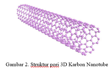 Struktur berpori pada Gambar. 2 karbon nanotube berkontribusi pada kapasitansi spesifik, yang merupakan jumlah muatan per satuan massa atau volume yang mampu disimpan oleh elektroda. Struktur tersebut mendukung peningkatan kapasitasi spesifik, sehingga memungkinkan penyimpanan energi yang lebih besar. Oleh karena itu, karbon nanotube diprediksi akan terus berkembang pesat di masa mendatang.