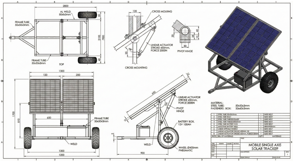 Faktor-faktor kunci seperti efisiensi panel surya, kapasitas penyimpanan baterai, dan desain antarmuka pengguna dievaluasi. Studi ini juga menilai manfaat dan tantangan yang terkait dengan implementasi stasiun pengisian daya panel fotoelektrik mobile, memberikan wawasan tentang potensi aplikasinya di berbagai pengaturan, termasuk daerah terpencil dan wilayah yang terkena bencana. Penelitian ini bertujuan untuk berkontribusi pada pengembangan infrastruktur pengisian daya mobile yang berkelanjutan, menjawab kebutuhan kritis dalam lanskap teknologi dan lingkungan yang berkembang pesat. Penelitian ini dimulai dengan pembuatan desain baik secara elektrikal maupun mekanikal dan uji coba fungsional alat.