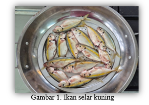 Ikan selar kuning merupakan ikan yang mendominasi perikanan tangkap di periaran Indonesia, dimana ikan selar banyak dijumpai pada bagian perairan utara Pulau Jawa salah satunya di wilayah Kalimantan Timur yang menjadi wilayah Pengelolaan Perikanan (WPP). Melimpahnya ketersediaan ikan selar membuat harganya cukup terjangkau oleh masyarakat, sehingga ikan selar dapat dijadikan sebagai alternatif pemenuhan nutrisi. Ikan selar dikenal memiliki kandungan nutrisi yang relative kompleks dintaranya terdiri atas protein, lemak dan mineral. Hingga saat ini ikan selar banyak di manfaatkan sebagai lauk atau makanan pendamping nasi seperti pindang, ikan asin dan ikan bakar hal ini sangat disayangkan mengingat ikan selar nutrisinya yang cukup kompleks. Ikan selar kuning lebih jelasnya disajikan pada Gambar 1.