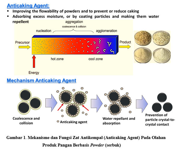 Salah satu jenis zat antikempal (anticaking agent) yang tidak disebutkan diatas adalah kalsium silikat atau dikenal dengan istilah Wollastonite dengan rumus senyawa CaSiO3. Wollastonite (CaSiO3) adalah salah satu senyawa anticaking agent yang dapat digunakan untuk mencegah pergerakan kue soida dengan konsentrasi 5% atau mencegah pergerakan garam dengan konsentrasi 2%. Selain itu material ini juga efektif menyerap minyak dan senyawa organic non- polar lainnya. Senyawa Anticaking agent ini biasanya dipakai dalam campuran tepung maupun rempah yang mengandung minyak atsiri. Secara komersial, CaSiO3.dibuat dari gamping dan tanah diatom pada kondisi yang sangat terkontrol. Sebagai anticaking agent yang efektif, silikat terhidrat harus diendapkan dan dikeringkan untuk memastikan material aktif yang akan menarik uap air. Sejauh ini pemanfaatan Wollastonite masih terbatas penggunaanya dalam bidang farmasi yakni sebagai antacid dan bahan fiksasi pada perawatan bedah tulang di bidang kedokteran gigi. Sedangkan Wollastonite yang berbahan dasar alami yang diaplikasikan sebagai anticaking agent pada olahan tepung belum banyak dikembangkan.