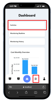 7. Ketika pengguna ingin menyalakan atau mematikan saklar dari jarak jauh, pengguna bisa klik menu switches