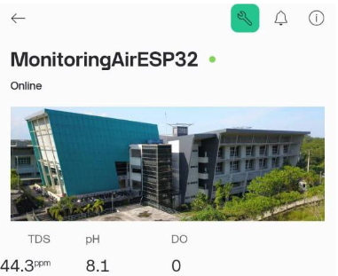 - Antarmuka Blynk menampilkan grafik real-time (plot data pH, TDS, dan DO terhadap waktu) dan display numerik yang diperbarui setiap beberapa detik.