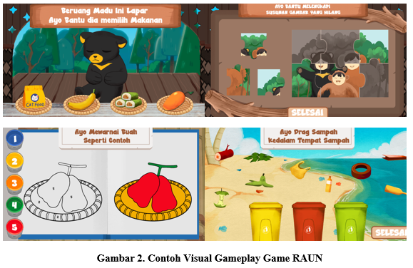 Tidak hanya mengenalkan wisata lokal, RAUN juga menyisipkan edukasi tentang lingkungan dan kehidupan sehari-hari. Anak diperkenalkan pada satwa khas seperti Beruang Madu, pentingnya menjaga kebersihan, serta belajar berhitung sederhana melalui berbagai aktivitas bermain. Beragam gameplay interaktif ditawarkan, mulai dari mencocokkan puzzle, memberi makan hewan, hingga permainan memilah sampah, sehingga proses belajar terasa lebih menyenangkan dan bermakna.