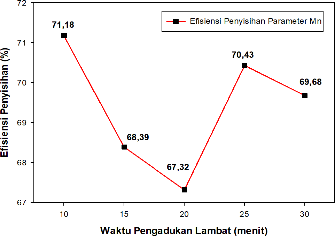 Gambar 5 Pengaruh Waktu Pengadukan Lambat Terhadap Efisiensi Penyisihan Parameter Mn