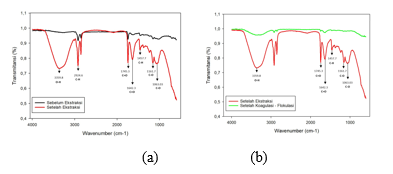 a. Spektrum FTIR Sebelum dan Setelah Ekstraksi (b) Spektrum FTIR Setelah Ekstraksi dan Setelah Koagulasi-Flokulasi