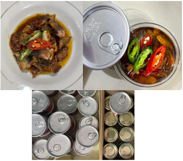 Dengan latar belakang yang telah dipaparkan potensi olahan makanan berbasis ikan asin menjadi suatu hal yang menjanjikan dengan pengemasan dan pengolahan yang tepat. Masyarakat diharapkan dengan adanya pengabdian masyarakat berupa diversifikasi produk ini dapat meningkatkan taraf hidup melalui niaga atau jual beli dengan memperhatikan target pasar. Pada pengemasan terdapat dua opsi yang dapat digunakan seperti PET can dan Toples Kaca. PET Can adalah jenis kaleng berbentuk silinder yang terbuat dari bahan plastik Polyethylene Terephthalate (PET). Isi di dalamnya dapat dilihat karena dibuat dari plastik bening atau transparan. Minuman ataupun makanan lainnya sering dikemas dalam kemasan ini. Kemasan ini memiliki beberapa variasi takarannya dari 50 mL hingga 500 mL. Kemasan ini sangat baik dalam hal penyimpanan karena tutupnya yang terbuat dari bahan besi yang nantinya di press dengan can sealer sehingga pada saat masa penjualan produk yang ada tetap dalam keadaan kedap udara. Selain itu terdapat opsi kemasan yang lebih baik berupa kemasan kaca bening yang dilengkapi dengan penutup stainless steel, karena dengan tutup berupa stainless steel kemasan dapat ditutup kembalidengan rapat sehingga dapat menghindari kontaminasi yang menyebabkan basi pada makanan. Lain halnya dengan PET can yang cenderung untuk perlu segera dihabiskan jika sudah dibuka. Agar konsumen dapat mengetahui hal ini maka pada pengemasan diberikan tata cara penyimpanan yang baik dan benar untuk memperkecil kemungkinan basi pada produk olahan ikan asin. Sambal Ikan Asin yang telah diolah sedemikian rupa dikemas dengan baik dan higienis serta dilakukan quality control agar pada saat dilakukan distribusi ataupun penjualan produk tidak terjadi kerusakan yang berarti pada produk olahan sambal ikan asin.
