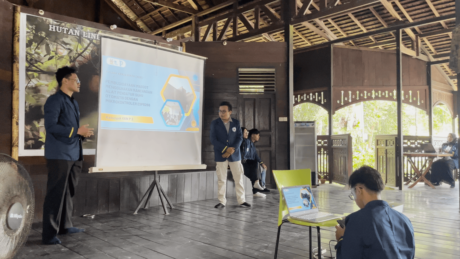 Penjelasan terkait penerapan teknologi dijelaskan melalui kegiatan sosialisasi bersama mitra dan warga sekitar RT 30 di Rumah Ulin Arya Hutan Lindung Sei Wain (HLSW). Alasan penerapan teknologi ini dilakukan karena perubahan suhu dan cuaca di Balikpapan dengan iklim tropis yang sering kali tidak menentu menjadi kendala bagi peternak maggot dalam menjaga suhu kandang tetap ideal dan stabil. Hal ini dapat menyebabkan penurunan kualitas dan sangat mempengaruhi produktivitas maggot. Untuk mengatasi hal ini, diusulkan sebuah inovasi teknologi berupa alat pengatur suhu otomatis berbasis mikrokontroler ESP8266 yang terintegrasi dengan Internet of Things (IoT).