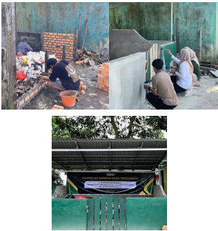 TPS yang selama ini digunakan warga RT 38 dan RT 56 berada dalam kondisi sangat memprihatinkan. Terbuat dari kayu lapuk, tidak memiliki tutup, serta terbuka terhadap cuaca, TPS tersebut menjadi sumber bau menyengat, tempat berkembang biaknya serangga, serta rawan pencemaran air tanah. Melalui kegiatan gotong royong bersama warga, tim KKN melakukan perombakan menyeluruh terhadap struktur TPS. Perbaikan meliputi pembersihan lokasi, penguatan struktur menggunakan batu bata dan semen, serta pemasangan atap dan penutup. Hasil perbaikan menunjukkan perubahan signifikan. TPS kini bersih, tertutup, dan kokoh, sesuai dengan standar SNI 19-2454-2002. Selain memperbaiki kondisi fisik, perbaikan TPS ini juga mendorong perubahan perilaku warga. Sampah tidak lagi dibuang sembarangan atau dibakar, melainkan dikumpulkan dan dikelola di TPS yang telah disediakan. Perubahan ini menandai langkah awal pembentukan budaya kebersihan yang lebih kuat di lingkungan tersebut.