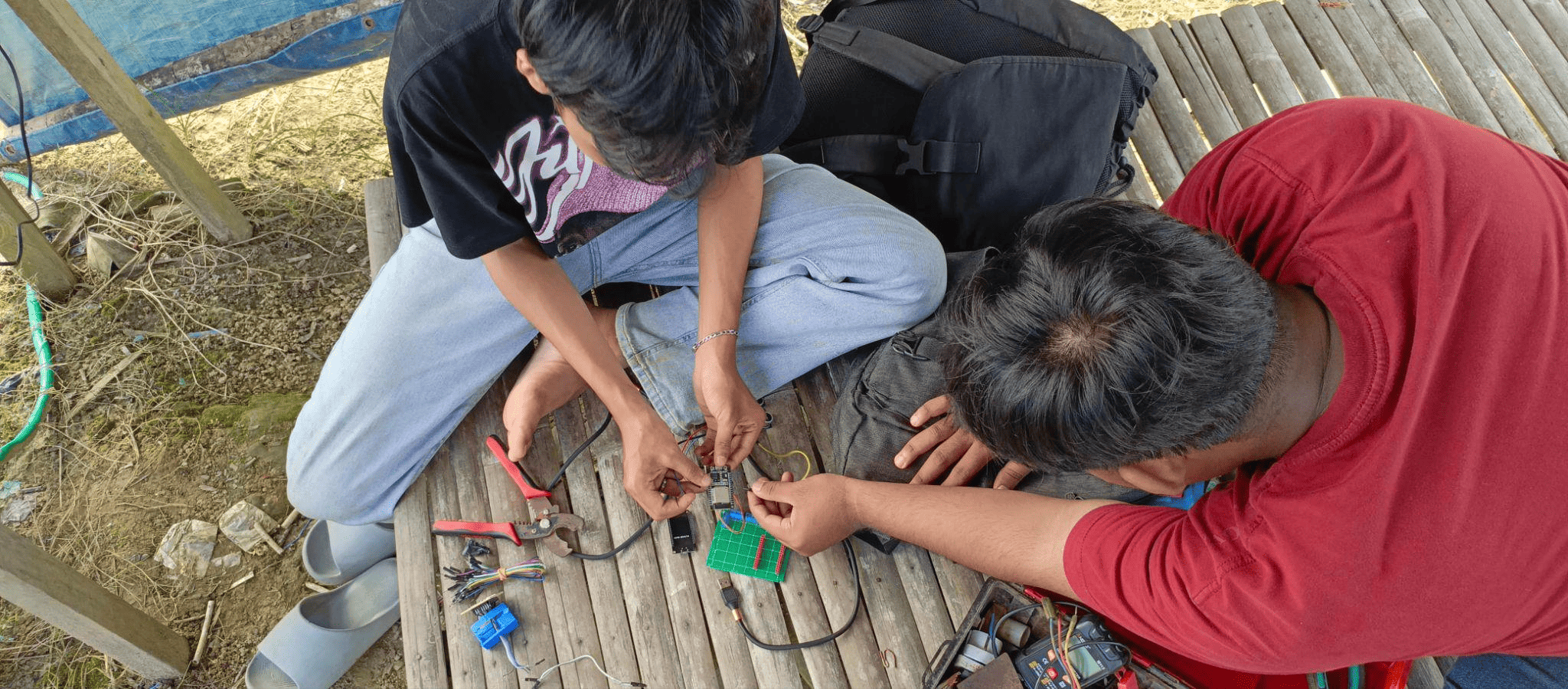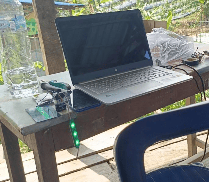 Pemasangan lampu dari Panel Surya untuk penerangan di gazebo atas kebun melon yang dekat dengan penempatan alat pengusir hama. Dalam hal ini kami menyambungkan kabel sepanjang 10 meter ke arah gazebo yang dekat dengan area penempatan alat pengusir hama. Pemasangan Lampu ini dilakukan agar memberikan penerangan yang cukup di area kebun, terutama saat malam hari atau kondisi gelap, sehingga meningkatkan keamanan kebun.