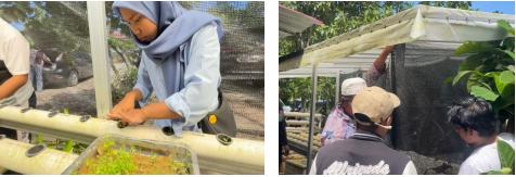 Program unggulan KKN 1J selanjutnya adalah mengaktifkan kembali sistem hidroponik yang sebelumnya terbengkalai. Tahapannya meliputi survei instalasi, pengadaan media semai, pembersihan area, hingga penyemaian bibit sayuran menggunakan rockwool dan nutrisi AB Mix. Setelah sekitar 14 hari, bibit dipindahkan ke media perawatan. Untuk melindungi tanaman, paranet dipasang mengelilingi area hidroponik. Selain itu, ditambahkan alat pemberi nutrisi otomatis yang mengalirkan nutrisi AB Mix dari tabung penyimpanan ke tabung air setiap pukul 07:00 WITA dan 17:00 WITA, memastikan pertumbuhan tanaman yang optimal.