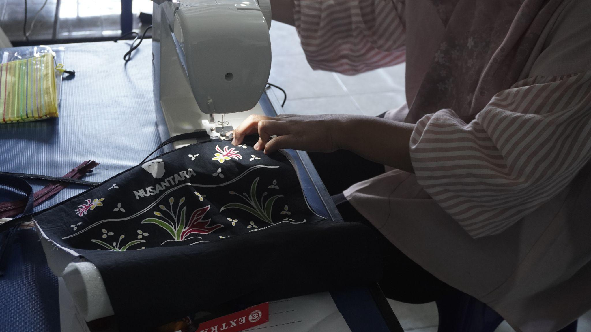 Tim pelaksana membimbing peserta untuk mengolah kain batik menjadi produk fungsional melalui proses menjahit dan perancangan pola. Peserta diajarkan teknik dasar menjahit menggunakan mesin jahit portable yang telah disediakan oleh tim pelaksana. Selain keterampilan menjahit, peserta juga diberikan pelatihan dalam membuat pola jahit untuk berbagai jenis produk rumah tangga, seperti bantal ruang tamu, totebag, taplak meja, dan produk perabotan lainnya.