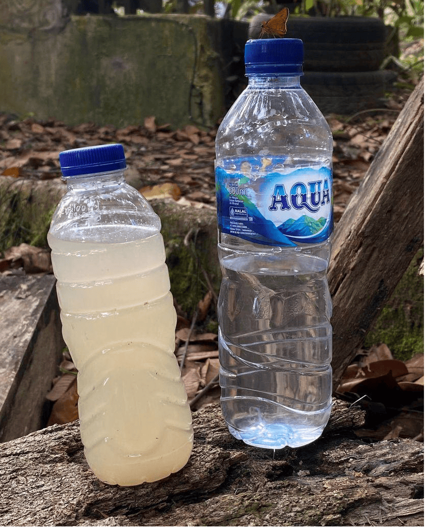 Gambar 4. Perbandingan Botol Air Sebelum dan Sesudah Filtrasi (Air Keruh vs Air Jernih)