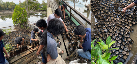 Pembibitan mangrove Kampung Nelayan Berdasi 1 yang terletak di Kelurahan Kariangau, Kota Balikpapan, merupakan kawasan pesisir yang memiliki ekosistem mangrove yang cukup luas dan potensial untuk dikembangkan sebagai kawasan konservasi dan ekowisata. Namun, sebagian wilayah pesisir mengalami penurunan kualitas vegetasi mangrove akibat aktivitas manusia, abrasi, tercemarnya kualitas air di lingkungan wisata dan kurangnya upaya reboisasi secara berkelanjutan. Program kerja ini bertujuan untuk mendukung upaya pelestarian lingkungan dan pengembangan ekowisata melalui kegiatan pembibitan mangrove. Kegiatan ini mencakup pengumpulan propagul (bibit alami) dari jenis mangrove yang ada di sekitar kawasan, persiapan media tanam menggunakan polybag dan tanah lumpur, serta penyusunan area pembibitan di lokasi yang aman dari pasang surut. Pelaksanaan program ini melibatkan partisipasi aktif masyarakat yang turut hadir.