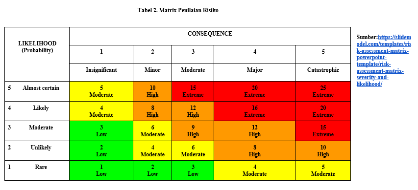 Menurut Peraturan Pemerintah Nomor 50 Tahun 2012, Keselamatan dan Kesehatan Kerja (K3) mencakup seluruh upaya yang dilakukan untuk menjamin serta melindungi tenaga kerja dari risiko kecelakaan dan penyakit akibat kerja. Lingkungan kerja yang tertata dengan baik akan menunjang efektivitas dan efisiensi kerja, sementara kondisi yang tidak aman dapat menimbulkan gangguan produktivitas serta risiko kesehatan dan keselamatan yang tinggi. Data dari ILO mencatat bahwa setiap tahunnya terjadi lebih dari 250 juta kasus kecelakaan kerja dan 160 juta kasus penyakit akibat kerja. Bahkan, lebih dari satu juta pekerja meninggal karena faktor-faktor tersebut. Kondisi ini menunjukkan bahwa risiko keselamatan kerja memberikan beban sosial dan ekonomi yang signifikan. Oleh sebab itu, penerapan manajemen risiko menjadi krusial, baik di industri besar maupun di sektor usaha kecil seperti Usaha Mikro Kecil dan Menengah (UMKM).