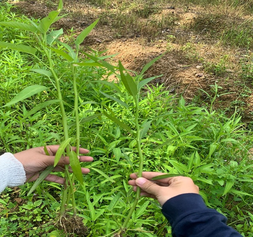 Pada Gambar 4 menunjukkan perbedaan pertumbuhan tanaman kangkung pada dua perlakuan berbeda. Tanaman kangkung pada sisi kiri yang tidak diberikan pupuk POC tampak memiliki ukuran batang dan daun yang lebih kecil dibandingkan dengan tanaman di sisi kanan yang diberikan pupuk POC. Selain itu, tanaman yang menggunakan pupuk POC juga terlihat lebih segar dan sehat, mengindikasikan asupan nutrisi yang lebih optimal. Temuan ini menunjukkan bahwa pupuk POC yang dihasilkan dalam program ini memiliki efektivitas yang lebih tinggi dibandingkan dengan pupuk organik konvensional maupun pupuk kimia dalam meningkatkan pertumbuhan tanaman kangkung.