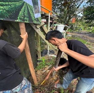 Sebagai bentuk penguatan kelembagaan, tim juga membuat dan memasang plang identitas Kelompok Tani Tunas Harapan. Hal ini bertujuan untuk meningkatkan visibilitas kelompok tani di masyarakat serta memperkuat eksistensi mereka dalam kegiatan sosial dan pertanian lokal.