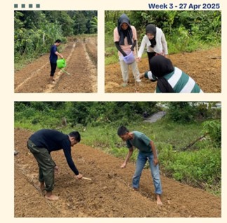 Kegiatan ini dilaksanakan secara bertahap selama periode Maret hingga Mei 2025, dan tercatat dalam logbook mingguan serta didokumentasikan melalui laporan akhir. Evaluasi keberhasilan program dilakukan dengan cara membandingkan hasil tanaman serta melakukan diskusi dengan mitra. Respons masyarakat sangat positif, ditunjukkan dengan antusiasme dalam mengikuti setiap kegiatan dan keinginan untuk melanjutkan praktik tersebut secara mandiri setelah KKN berakhir.