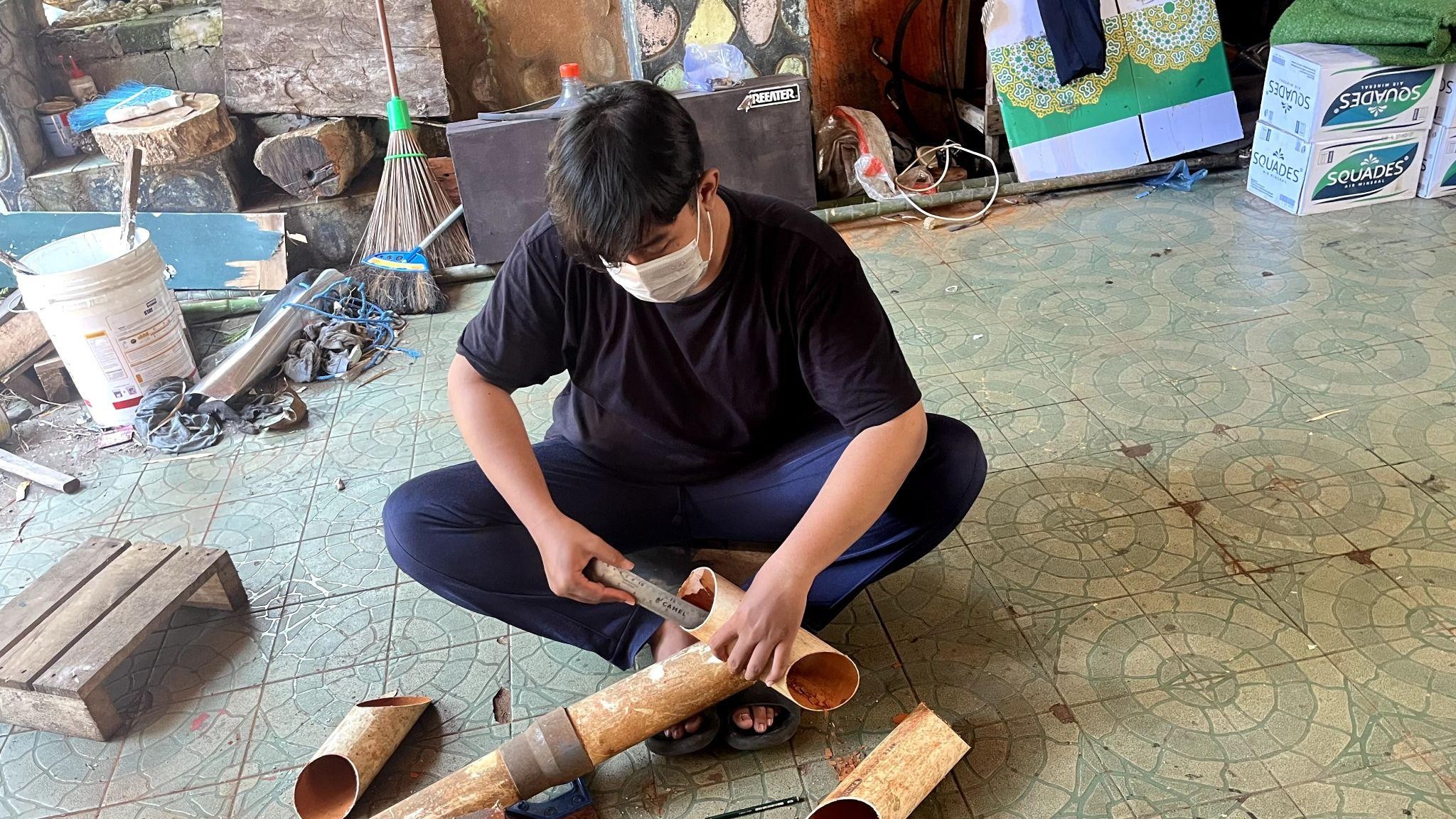 Setelah memilih lokasi dan sasaran masyarakat, tahap selanjutnya adalah perancangan dan pembuatan alat komposter yang sederhana namun efektif. Komposter yang dirancang menggunakan bahan-bahan lokal seperti bambu dan kawat, yang tidak hanya murah dan mudah didapat, tetapi juga cukup tahan terhadap kondisi cuaca tropis yang sering kali lembap dan hujan. Pembuatan komposter ini dilakukan sepenuhnya oleh kelompok KKN, tanpa keterlibatan langsung dari warga setempat. Kelompok KKN bertanggung jawab atas seluruh proses pembuatan komposter, mulai dari pemilihan bahan, pemotongan bambu, perakitan struktur, hingga pemasangan komponen seperti kawat untuk menahan bahan organik yang dimasukkan.