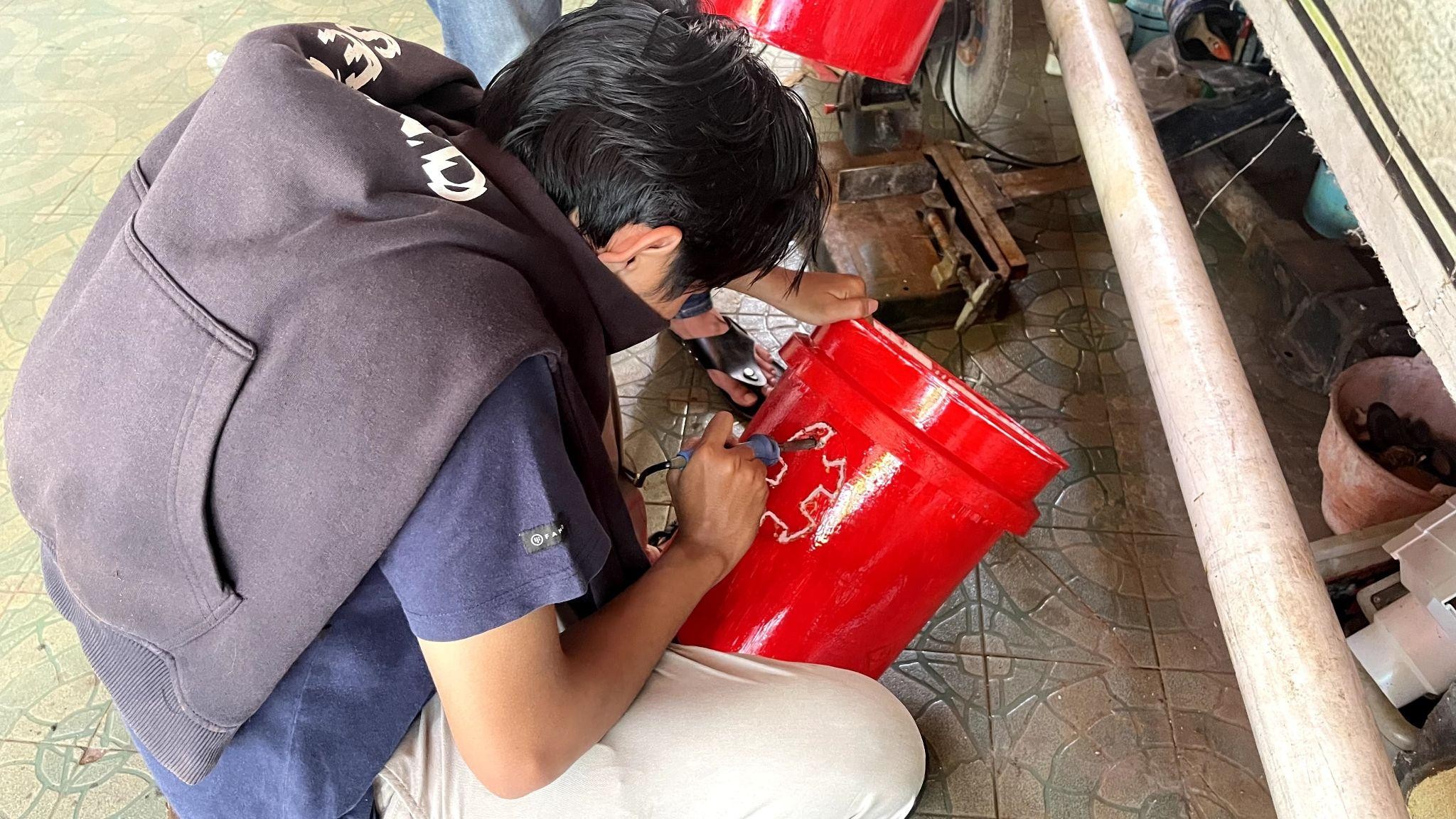 2. Melakukan Progress dari Pembuatan Komposter (Cat Ember Komposter)